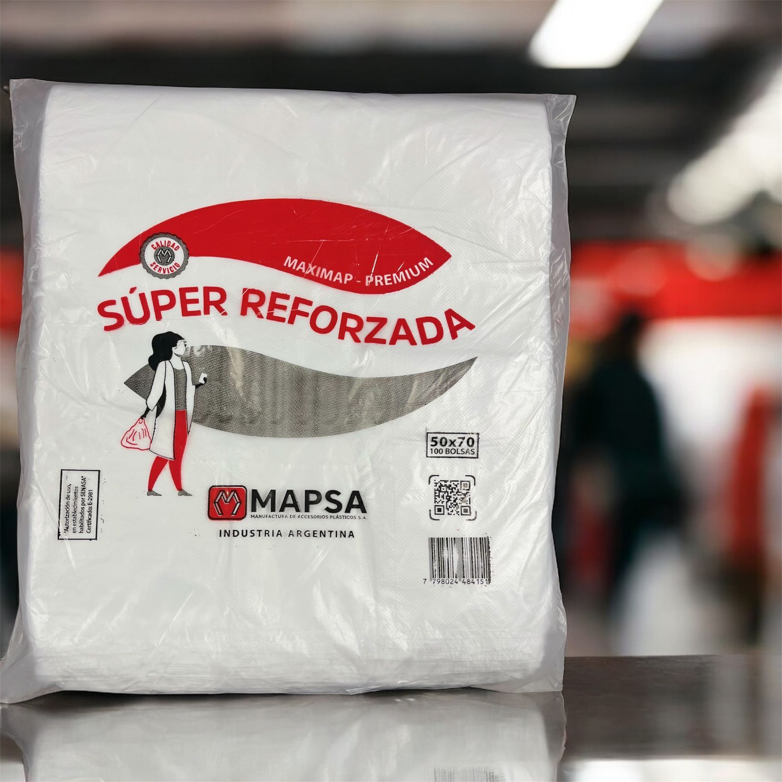 Fabricada con carbonato de calcio y un porcentaje mínimo de polietileno, esta bolsa:
